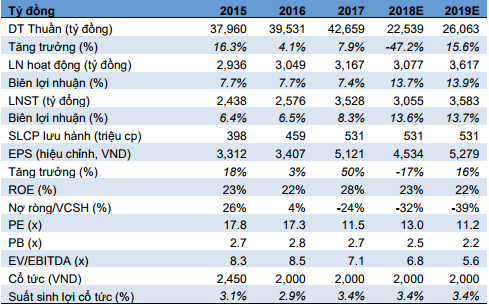 Trong 2018, chúng tôi ước tính doanh thu và lợi nhuận thuần của FPT có thể đạt 22,539 tỷ đồng và 3,055 tỷ đồng tương ứng. Chúng tôi định giá FPT ở mức 68,000đ/cp cuối 2018. Tổng mức lợi nhuận kỳ vọng đạt 18% so với giá thị trường là 59,000 đồng. Khuyến nghị TĂNG TỶ TRỌNG.