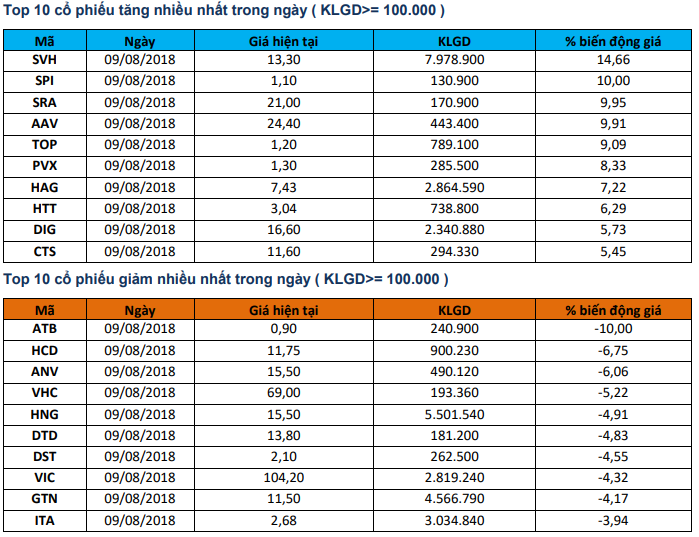 Thông tin giá dầu bất ngờ chạm đáy 6 tuần khi dự trữ dầu thô Mỹ giảm ít hơn dự kiến và căng thẳng thương mại Mỹ – Trung gia tăng đã làm nhóm cổ phiếu dầu khí (PLX, PVD, PVS, PVB, PVT,…) giảm điểm, chỉ còn GAS tăng nhẹ 0,2% lên mức 98.200 đồng. Cùng với nhóm ngân hàng, các cổ phiếu dầu khí cũng góp phần kìm hãm đã tăng của thị trường.