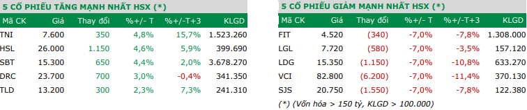 Tại nhóm cổ phiếu vừa và nhỏ, HNG tiếp tục đi ngược thị trường với phiên tăng giá thứ 5 liên tiếp, tổng cộng tăng 8,8%. Ngày 23/6/2018, ĐHCĐ của HNG sẽ được tổ chức. Trong đại hội này, HNG dự kiến trình kế hoạch 2018 với doanh thu thuần 3.743 tỷ đồng, lợi nhuận trước thuế khoảng 150 tỷ đồng, giảm 66% so với thực hiện 2017. Năm 2018 Công ty dự kiến sẽ không chia cổ tức.