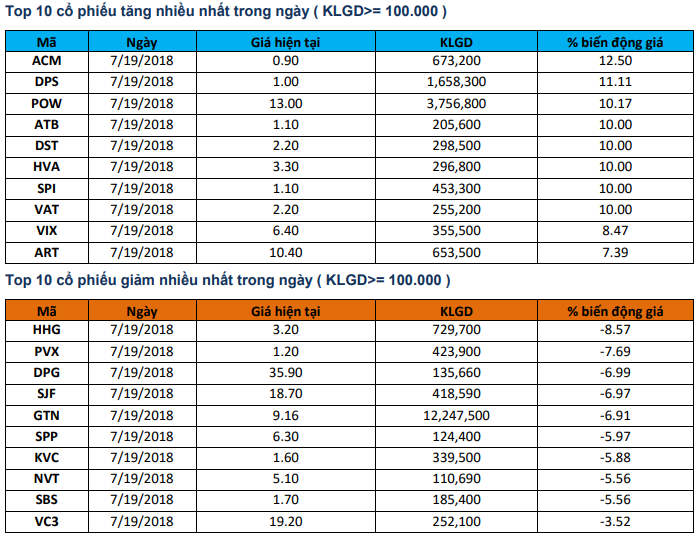 Tại nhóm cổ phiếu VN30, VJC gây chú ý khi tăng mạnh 4,1% với thanh khoản đạt gần 1,2 triệu đơn vị sau thông tin tại triển lãm hàng không thế giới Farnborough Airshow 2018 diễn ra ở Anh, Vietjet và Tập đoàn Chế tạo máy bay Boeing (Mỹ) đã ký kết hợp đồng 100 máy bay B737 MAX trị giá 12,7 tỷ USD. Bên cạnh đó, BHN tăng trần, MSN (+4,08%), GAS (+1,4%), VNM (+0,9%), BVH (+2,2%)…. Đáng chú ý, HSG có phiên tăng trần thứ 2 liên tiếp lên 11.550 đồng/cp và tiếp tục được khối ngoại mua ròng.